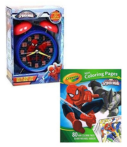 Ultimate Spider-man Twin Bell Alarm Clock. Your Spider-man fan will love waking up to this twin bell alarm clock. This clock features a metal case, 30 dial and has quartz accuracy. Now its time to have fun with Crayola Mini Coloring Pages with 6 mini washable Markers.