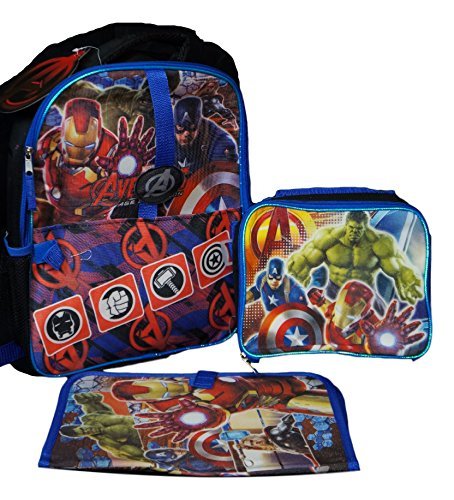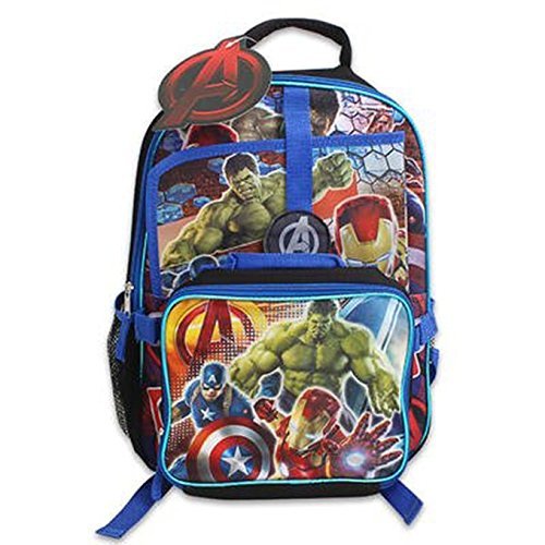 Marvel Avengers Age of Ultron Backpack Set comes with a backpack, lunch box, and folder for your homework! Features images of Iron Man, Hulk, and Captain America. Includes backpack, detachable insulated lunch box, and cloth homework folder. Side mesh pockets and adjustable shoulder straps Adjustable shoulder straps Hanger loop for hanging Padded strap and back zippered closure 2 exterior side mesh pockets