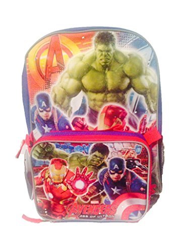 Get your Avengers fan ready for school in style! This Great set includes a large 16" backpack and an insulated lunch bag. The backpack features a padded back and adjustable straps, 2 mesh side pockets and factory-sewn zipper pulls. The front of the backpack has velcro straps to attach/detach the lunch bag! The lunch bag is insulated and has a medium-size compartment to pack a lunch and snacks! It features the Avengers team and a wipeable lining for easy cleanup!