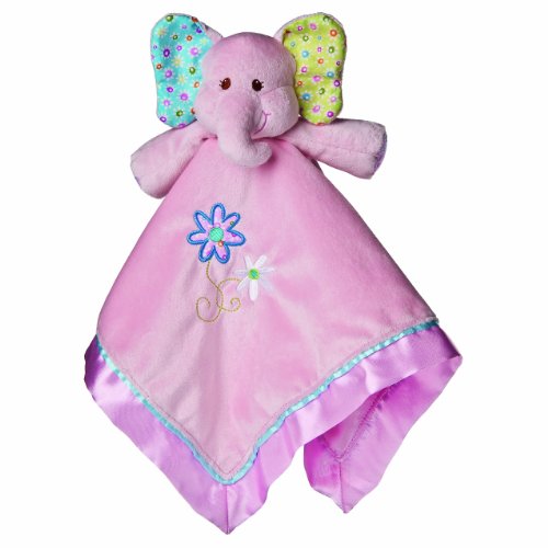 Ella bella elephant baby blanket with attached stuffed animal, Fully lined blanket is 17" square; surface wash, Art work and features are embroidered to be baby safe, Look for all of mary meyer's ella bella items for baby gifts sure to please, Mary meyer has been making toys that are fun and safe for more than 75 years