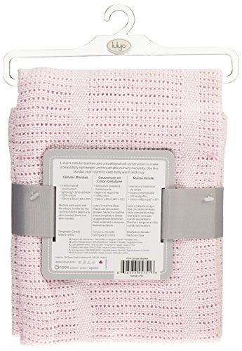 Knitted cotton blanket with cellular construction for greater insulation and breathability;Pink blanket is 39 x 31;Machine washable;Lightweight and breathable; warm enough to keep baby cozy all year round;From baby blankets, swaddles, Turkish towels and washcloths to cellular blankets and sleep sacks, lulujo creates functional products with comforting fabrics for the modern nursery;100% cotton;39x31;traditional cell construction;lightweight and breathable
