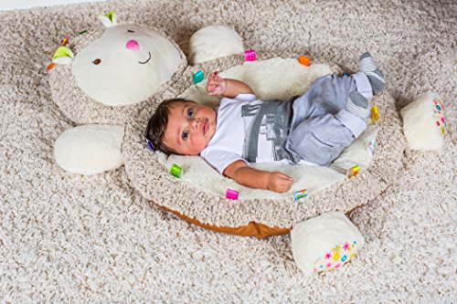 Hedgehog floor mat for baby is adorned with interactive and soothing tags babies love to explore;Measures approximately 31 x 23;Features soft fabric on top and a durable, non-skid fabric bottom; machine wash delicate cycle, air dry;Folds up easily for travel; great place for supervised tummy time or a soft place to sit and play;Baby Mats from Mary Meyer make terrific baby shower gifts that delight and WOW; coordinate with blankets and soft toys from the Taggies Signature Collection