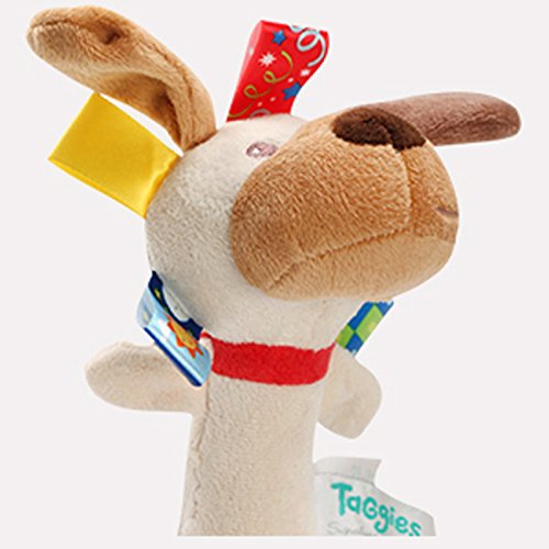 Buddy dog rattle measures 6'' tall;Made with ultra-soft microfiber fabric;Taggies are adorned with patented looped ribbon tags that babies love to explore and rub;Perfect size and shape for little hands to shake;Mary Meyer products are all made to strict quality standards to meet or exceed us toy safety requirements