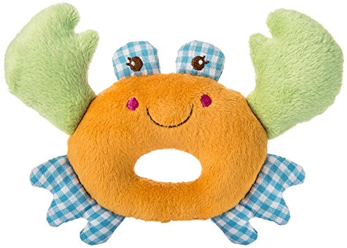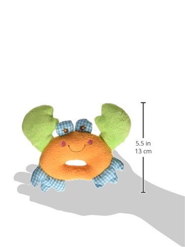 Colorful crab rattle with embroidered details and matching colored balls inside rattle ring;5 diameter;Perfect size for little hands