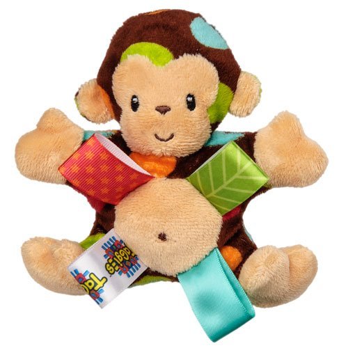 The delight is in the details. Featuring a cheerful embroidered face, polka dots and patented Taggies pull tags, the dazzle dots monkey soft toy is sure to become an immediate favorite with your baby. With truly innovative attributes and small beginnings, Taggies has revolutionized and redefined how little ones feel secure and engaged in play. Originating with a mother's observation that her baby was more interested in the satin tags on toys than the object itself, today Taggies offers a broad array of simple but fun products designed to enhance a child's growth and sense of security. At the core of our brand are the unique, interactive, and patented looped tags to touch and explore. The snuggly soft fabrics, colors, and textures of Taggies help nurture a child and provide simple opportunities for fine motor skill development and sensory stimulation. This Taggies is brought to you by Mary Meyer toys.