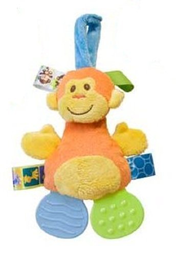 Part of Mary Meyer's TAGGIES collection, this cute plush teether has TWO teethers attached - one on each foot. Hangs securely with velcro closure.