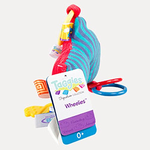 Monster truck activity toy is 7 inches tall;Features rings, tether and squeaker;Adorned with interactive and soothing tags babies love to explore;Great for teething babies, hangs from crib or stroller;Features rings, teether and squeaker;Great for teething babies; hangs from crib or stroller;Taggies toys, blankets and baby mats make great coordinating baby shower gifts