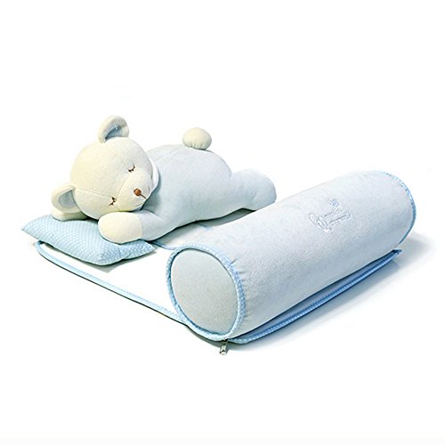 Masaling ベビーまくら 寝姿を正す 向き癖対応 向きぐせ防止クッション 快適 調整可能 清浄可能 ままも安心 0-3歳 (ブルー 熊)