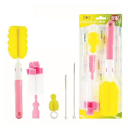 Masaling ベビー哺乳瓶専用 哺乳瓶洗い ブラシ 洗浄ブラシ プラスチック製 5本セット (ピンク)