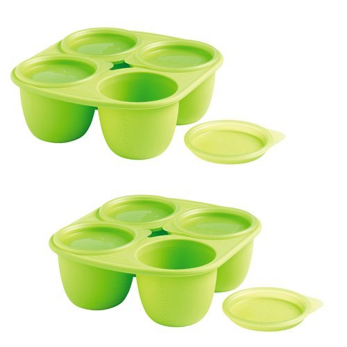 Know exactly what your child is eating! Create healthy and balanced meals to help your little ones grow;Cook pureed fruits, vegetables, or ground meat or fish and store in the fridge or freeze for later;Portion cups are fitted with individual airtight lids to seal in flavor and keep odors out;Made from flexible silicone for quick and easy removal,To use, just remove the meal from the mold and reheat in the microwave or double boiler;Set includes 2 - four portion 8 oz. Baby Pods. Set of 4 measures 7.9 x 8.4 x 2.9 inches ; 9.8 ounces
