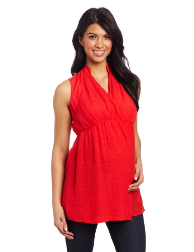 Maternal AmericaレディースマタニティノースリーブMandarin Collarラップシャツ US サイズ: S カラー: レッド