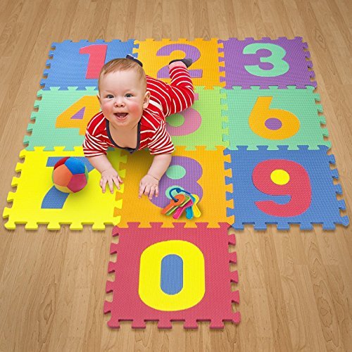 Interlocking puzzle pieces from each mat can be mixed and matched to evolve with your needs or for interactive playtime. Large, cushioned, and colorful puzzle pieces are very safe; not only to protect your children but also to protect against damage to floors. They are excellent play mats to keeps kids entertained. They come in bright, assorted colors that can be easily be rearranged to you or your child's preference. The puzzle pieces can even be used to build creative shapes and figures! Another great feature is that each number can be removed from the mat for interactive learning.