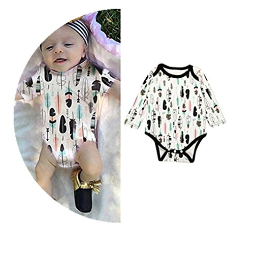 matoen新生児赤ちゃん男の子女の子フェザープリント長袖ロンパースジャンプスーツ服装服 カラー: ホワイト