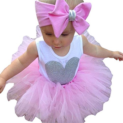 matoen新生児赤ちゃん女の子ハートプリントロンパースヘッドバンド用フリル付きスカート服装服セット カラー: ピンク