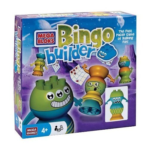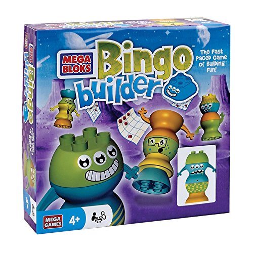 The players take turns throwing the dice. At each turn, the person who threw the dice reads the result to others. Each player checks his or her Bingo matching cards to see if they have a match. The first person to match four in a row and yell "Bingo" earns a Bingo piece. The first person to collect all four Bingo pieces wins.Mega Bloks Bingo Builder Game:Designed for 2-4 playersIncludes 16 Mini bloks