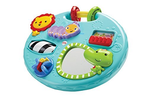 The Fisher-Price Explore & Play Panel by Mattel is designed with a variety of fine motor activities to keep baby busy and entertained! A great way to encourage sensor development, curiosity and discovery. It includes a mirror for self-discovery, black and white spinner, dials, a caterpillar slider and a lion squeaker.