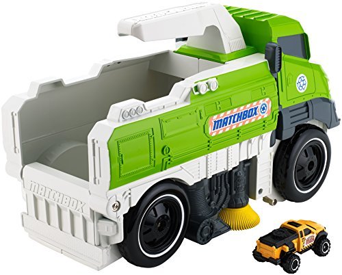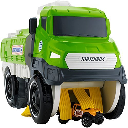 ?The Matchbox Sweep 'N' Keep Truck makes picking up after playing a fun activity? picks up small diecast cars and most blocks with a simple rolling action. This large-scale vehicle picks up and stores up 30 cars. When the front wheels roll forward this hard working truck recreates real Street Sweeper action by picking up blocks or up to 10 Matchbox or any other diecast car. Once you’re ready you can also dump them from the rear. Includes a handle so it it's portable, too. It's a win-win for mom and kids. Matchbox is the official vehicle of the road less travelled, the road to discovery and adventure where you least expect it. Matchbox Driven to Explore?.
