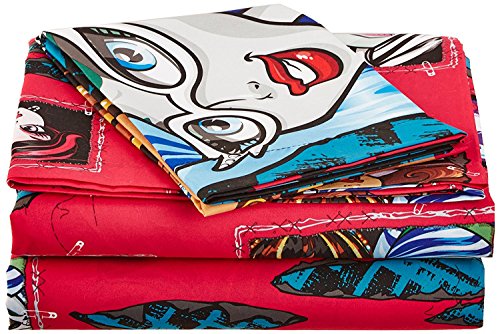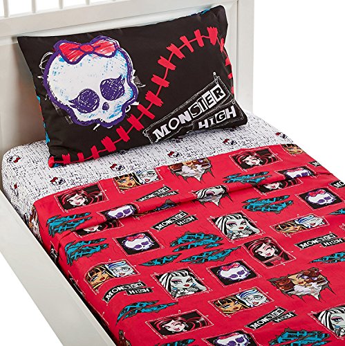 Monster High Twin Sheet Set made of Microfiber material. Includes a reversible pillowcase with both sides having different picture, fitted sheet, and flat sheet.
