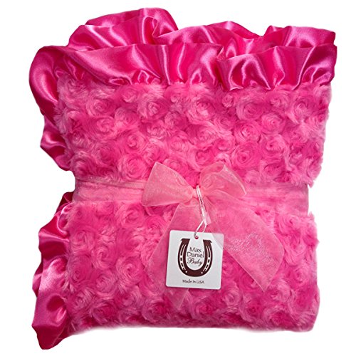 This is the official Max Daniel Designs brand and Amazon page;Recipient of Disney's prestigious iParenting Media Award, Family Choice Award, Baby Maternity Magazine's coveted Top Choice Award, and more;36x32 Double-Sided Plush Trimmed in Charmeuse Satin Ruffle;Machine washable;Made in USA