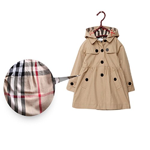 Max トレンチ コート おしゃれな 女の子 キッズ用 トレンチ コート 子供 アウター コート 防寒着 (130, カーキ)