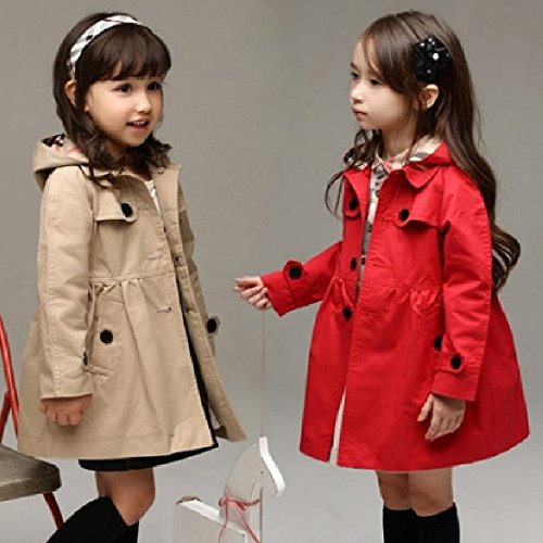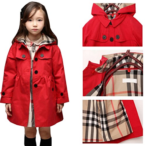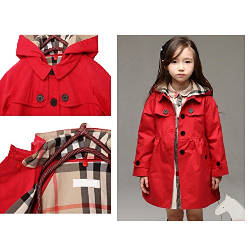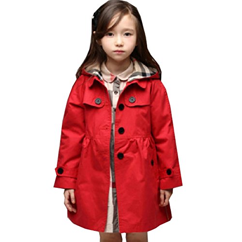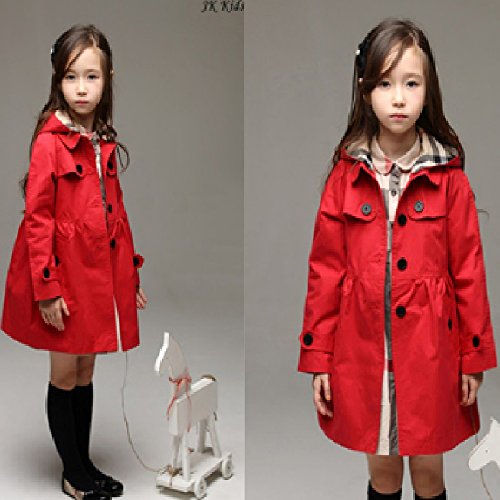 Max トレンチ コート おしゃれな 女の子 キッズ用 トレンチ コート 子供 アウター コート 防寒着 (140, レッド)
