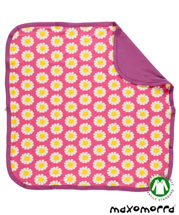 北欧スウェーデンのMaxomorraのベビー&キッズアイテム。 オーガニックコットンのブランケットです。どうぶつやのりものなど、お子様が大好きなモチーフを使った ユニークでカラフルなグラフィックデザインが人気のマクソモーラ。 再登場率の高い、女の子に人気のデイジー柄。 女の子が大好きなピンクと紫も、ビビットなカラーで北欧らしいおしゃれなデザインに。表はかわいいヒツジ柄のグラフィックプリント、 裏は色鮮やかなグリーンの無地柄で、裏と表を使い分けることができます。 コットン素材なのでたたんでも嵩張らず、持ち運びもしやすい。 温度調節で体をあたためてあげたり、強い日差しから守ってあげたり、 コットン素材のブランケットは1枚持っているととても便利なアイテムです。 ママのひざかけや、お部屋のインテリアにもなりますよ。布地の素材には世界基準のGOTS認定のオーガニックコットンを使用。 適度な伸縮性もあるやわらかい素材で、お子様をやさしく包み込みます。デザイン性の高いマクソモーラのブランケットは ご出産祝いのプレゼントにも選ばれています。サイズ:70cm×70cm