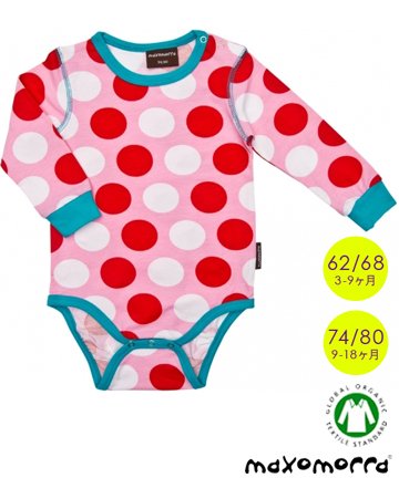 北欧ベビー服 長袖ロンパース 肌着 ボディスーツ 水玉 3-9ヶ月/9-18ヶ月 Maxomorra マクソモーラ Polkadot (74/80)