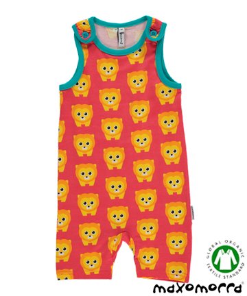 北欧スウェーデンのMaxomorraのベビー服。 北欧スウェーデンブランド、マクソモーラのサロペット。夏用のサロペットは、半ズボン丈のつなぎのお洋服です。そのまま1枚で着たり、インナーを合わせて重ね着したり、着回しのきくアイテム。 どうぶつやのりものなど、お子様が大好きなモチーフを使った ユニークでカラフルなグラフィックデザインが人気のマクソモーラ。まんまるお目々がキュートなライオン柄は、男の子が着ても女の子が着てもかわいい、ユニセックスプリントです。肩のボタンを外して脱ぎ着をするサロペットは、前も後ろもすっきりとしたデザイン。首回りが広く開いていないので、暑い日は1枚で着ることができます。しかも、オーガニックコットンなので着心地もよく肌に直接触れても安心です。股のスナップボタンはついていませんが、両肩のボタンを外して、足元までおろすだけでお着替えできます。インナーを着て、重ね着スタイルも楽しめます。ストレッチがきいているので赤ちゃんの動きにぴったりフィットして、 さらに汗もしっかり吸収します。 世界基準であるGOTS認定のオーガニックコットンを使用しています。 美しい発色を出す染料も、GOTSの審査をクリアしてものだけを使っています。 機能的でデザイン性の高いマクソモーラのベビー服は、 ご出産祝いのプレゼントにも選ばれています。