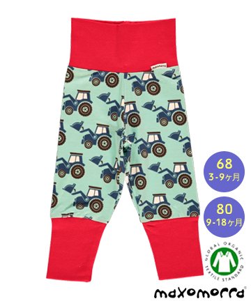 北欧スウェーデンのベビー服 ベビーパンツ Tractor 3-9ヶ月/9-18ヶ月 Maxomorra マクソモーラ (68サイズ)