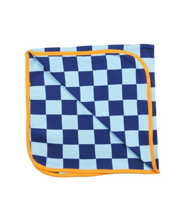 (マクソモーラ)Maxomorra オーガニックコットン ブランケット Squares 85×85cm ライトブルー×ブルー/オレンジ