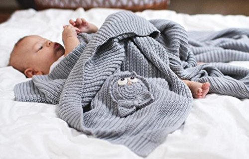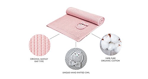 MayLily Premium | COTTONLOVE コットンラブ ブランケット 赤ちゃんのために | 100x80cm | 100%有機綿 (GOTS) | 手編みのふくろう | ポーランドで縫製 | 多くの色で利用可能