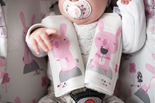 MayLily Premium | 竹素材ベルトカバー 車用・ベビーカー用 (バンブーベルトカバー ) | 100%竹ビスコース | 抗アレルギー | ポーランド製 | 多くの色で利用可能 (ピンクの子猫)