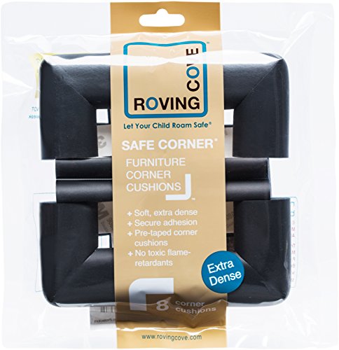 GENUINE ROVING COVE? PRODUCT: All of our product reviews are authentic. None of our Verified Purchase reviewers were given free or discounted products for their unbiased review. Beware of scam reviews. Beware of phantom sellers. Roving Cove? is a New York registered trademark is owned by Mayapple Baby? of Brooklyn, NY.;PUREST: Roving Cove? uses the safest and purest raw material available and was the first brand to make foam safety bumpers without the use of toxic flame-retardant chemicals (SCCPs). This product contains no BPA, no phthalates, no heavy metals, no latex, no SCCPs. Inherently flame-resistant; passed flammability tests under US regulations.;DENSEST: Density is more important than thicknessTM when it comes to softening impact. Roving Cove cushions measure Shore A Durometer of 20-30, much more dense than the industry standard of 12-15. Soft, high-density premium cushions absorb impact and protect your loved one from the hard, sharp corners and edges in your home or at schools, daycares, preschools, hospitals, assisted living facilities, senior facilities, senior housing, work areas, offices, museums, restaurants and more.;EXTRA CORNERS: Value Pack includes 8 premium, L-shaped corner cushions; eight is enough to fit 2 tables, the most of any product on the market. You almost always need more than four!;SECURE ADHESION: Includes authentic, easy-to-peel, premium 9080a (gray, not red backing) 3M double-sided tape on PRE-TAPED corner cushions). See photos at left for proper tape alignment. Onyx color goes well with dark oak, dark walnut, ebony, mahogany, dark cherry, or black, granite or dark-colored furniture, such as tables, chairs, chests, shelves, stairs and fireplaces/hearths. | All text and photos/images in this product listing are copyrighted materials. ? 2012-2016 Mayapple Baby