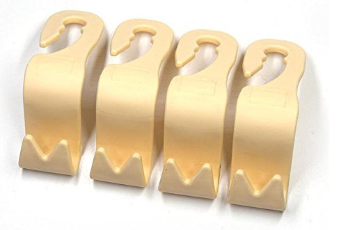 4個自動車SUVリアシートヘッドレストハンガーフック 財布食品袋フック (ベージュ)