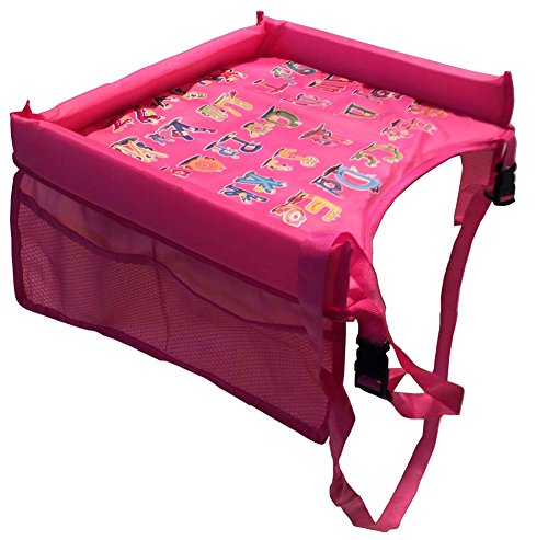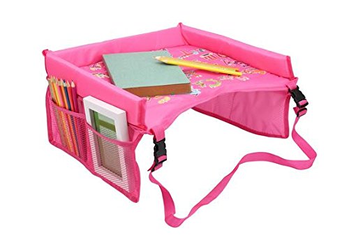 お子様 車内 チャイルドシート用 トレイテーブル 防水 お遊び台 お絵かき台 食事台 渋滞 長時間ドライブのお供 サイドメッシュポケット (ピンク)