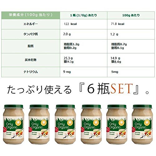 オンリーオーガニック ベビーフード 「フルーツミューズリー」 離乳中期~ 170g×6ビンセット 通常納品書無し