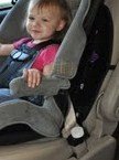 車の座席、ブースター席との連携標準シートベルト。
