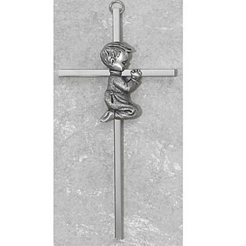 Silver Tone Cross with Praying Boy, 6 Inch