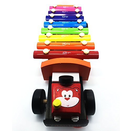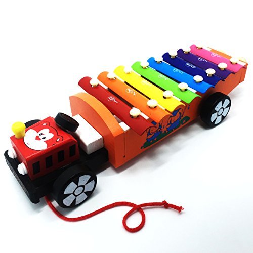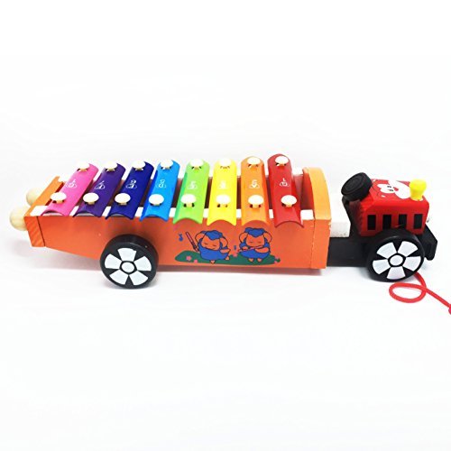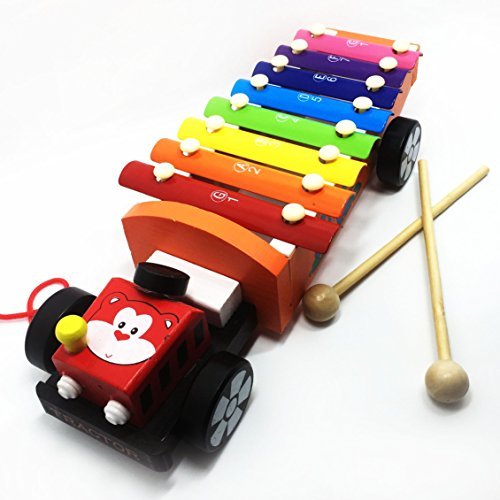 Wooden 8 Notes Tap-a-tune Xylophone Glockenspiel Knock Piano with Pull Along Truck Tractor Trolley for Kids Cartoon Design .Made of high quality materials, included beech, pine, and steel sheet.Great birthday gifts idea for kids children baby.