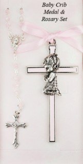 Girl Crib Cross and Rosary set Cross is 3 1/2 inches great baptism christening gift keepsake gift