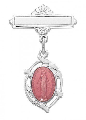 PINK MIRACULOUS BABY PIN great baptism christening gift baby badge STERLING SILVER baptism keepsake by KeegansCatholicTreasures