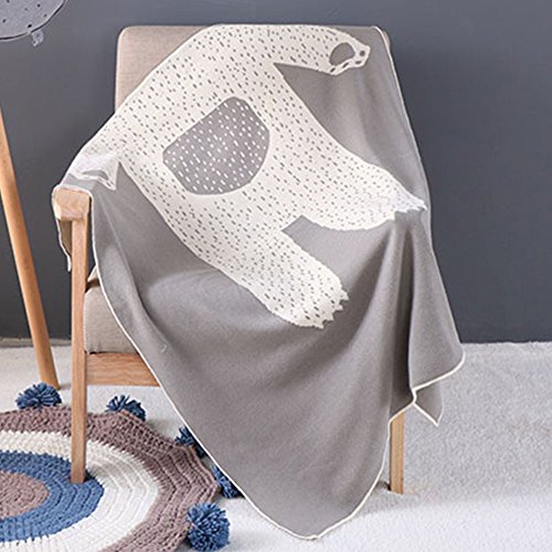 ベビーブランケット ニット ブランケット ひざ掛け 可愛い 模様 カバー (グレー)
