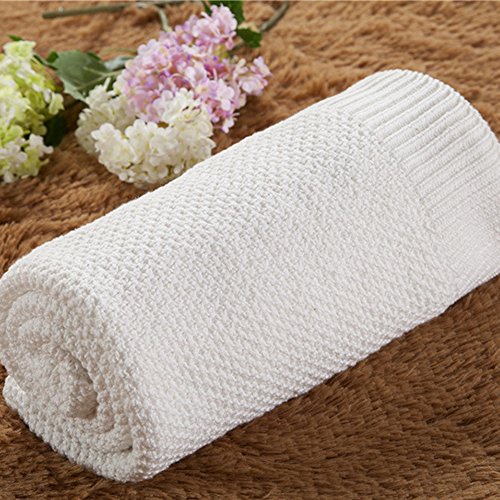 夢_ホームベビーピュアカラーニットブランケット – 100 %コットン子供スリープCovers Machine Washableファミリギフト33 x 41インチピンク 33x41inch ホワイト
