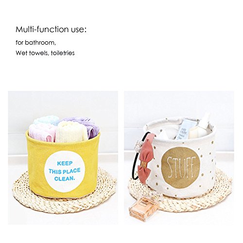 夢_ホームモダン円柱状ストレージバスケット、コットンリネンバスケットオーガナイザー保育園ベビーおもちゃ、メイクアップ、本、スモール、セットの3 7.7 x 7.7 x 5.5 inch イエロー