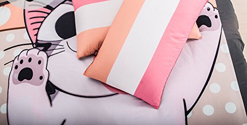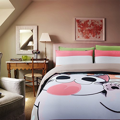 MeMoreCool Home Textile Japanese Anime Cartoon Kids Bedding Set Cute Cheese Cat Thicken Brushed Duvet Cover Fashion Teenager Fillet Bed Sheets Queen Size 100% Cotton 4Pcs [並行輸入品]
