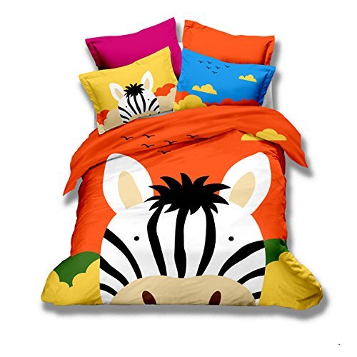 MeMoreCool Home Textile Cute Cartoon Animals Design Lovely Zebra Kids Students Colorful Bedding Set Girls Boys Duvet Cover Set 100% Cotton Bedding Twin Size 3Pcs [並行輸入品]