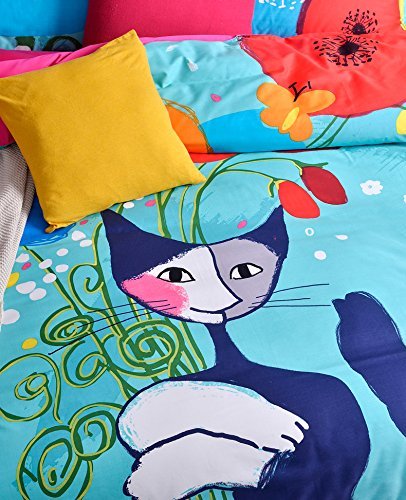 MeMoreCool Home Textile Cute Cartoon Design Coloful Pattern Kids Bedding Set Creative Cat Boys and Girls Duvet Cover Students Bed Sheets Queen Size 100% Cotton 4Pcs [並行輸入品]