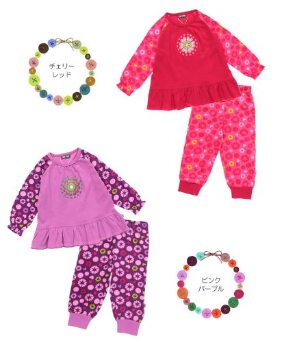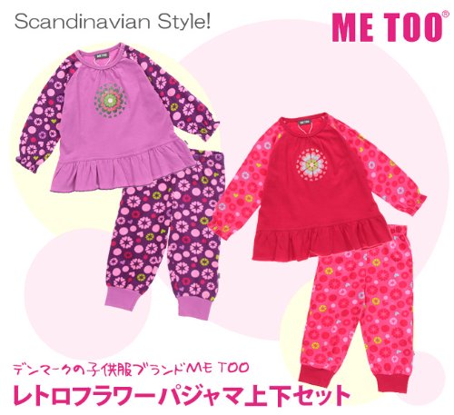 デンマークの子供服ブランドMeToo レトロフラワー チェリーレッド パジャマ 上下セット 86cm