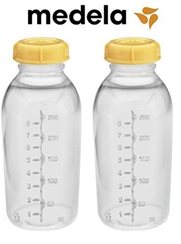 2-Pack sealed breast milk collection and storage bottle with lid - size 8 oz/ 250 ml., Bottles are compatible with all Medela breast pumps. Milk can be expressed and pumped directly into the container., Easy to read measurement in ounces (oz.) and millimeters (mm). Reusable bottles. Resistant to scratches, cracking and splintering., Bottles fit Medela container stand. Dishwasher and microwave safe., Screw-on lid for leak-proof seal - ideal for storing breast milk in refrigerator or freezer. Special polypropylene plastic retains breast milk's beneficial properties - safe & hygienic method for long-term breast milk storage.