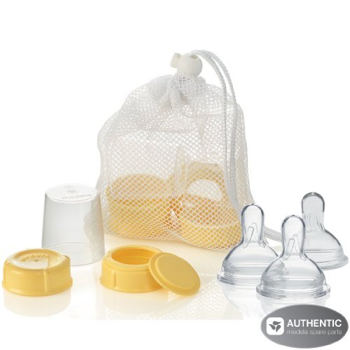 Medela Breastmilk Bottle Spare Parts WITH Three Medium-Flow Wide Base Nipples by Medela